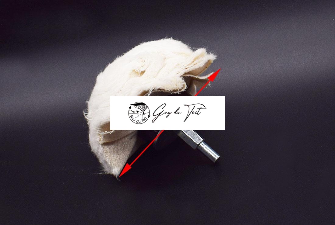 Diámetro: 100 mm. Especialmente abombado para pulir una superficie cóncava, el mandril de 6 mm de diámetro se adapta a la mayoría de las brocas eléctricas.
