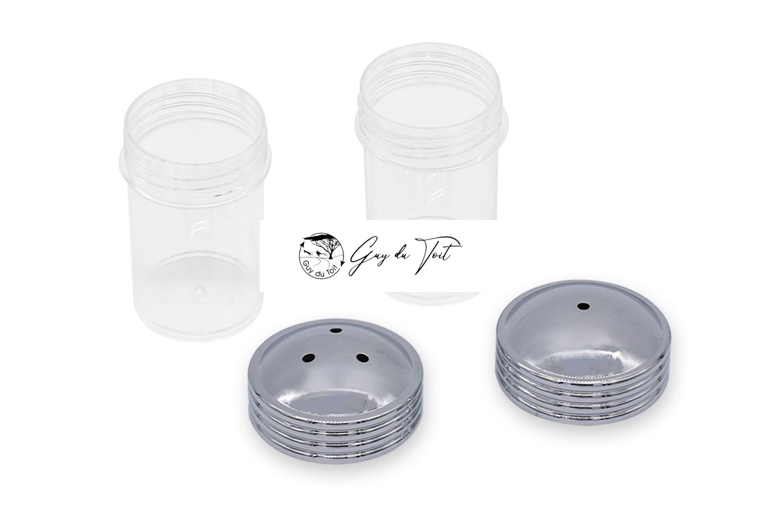 Kits de mini salero y pimentero cromados. Los insertos son de plástico resistente con tapas de latón cromado. Cree su propio y exclusivo juego de salero y pimentero. El precio se basa en un juego. El juego incluye 2 tubos de plástico y tapas de salero y pimentero. Tamaño del tubo de plástico: 28*48,5 mm