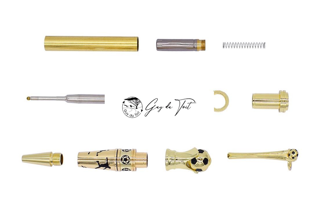 Étiquettes : accessoires sportsman, cadeau football, kit de tournage sur bois, placage d'or, stylo de football