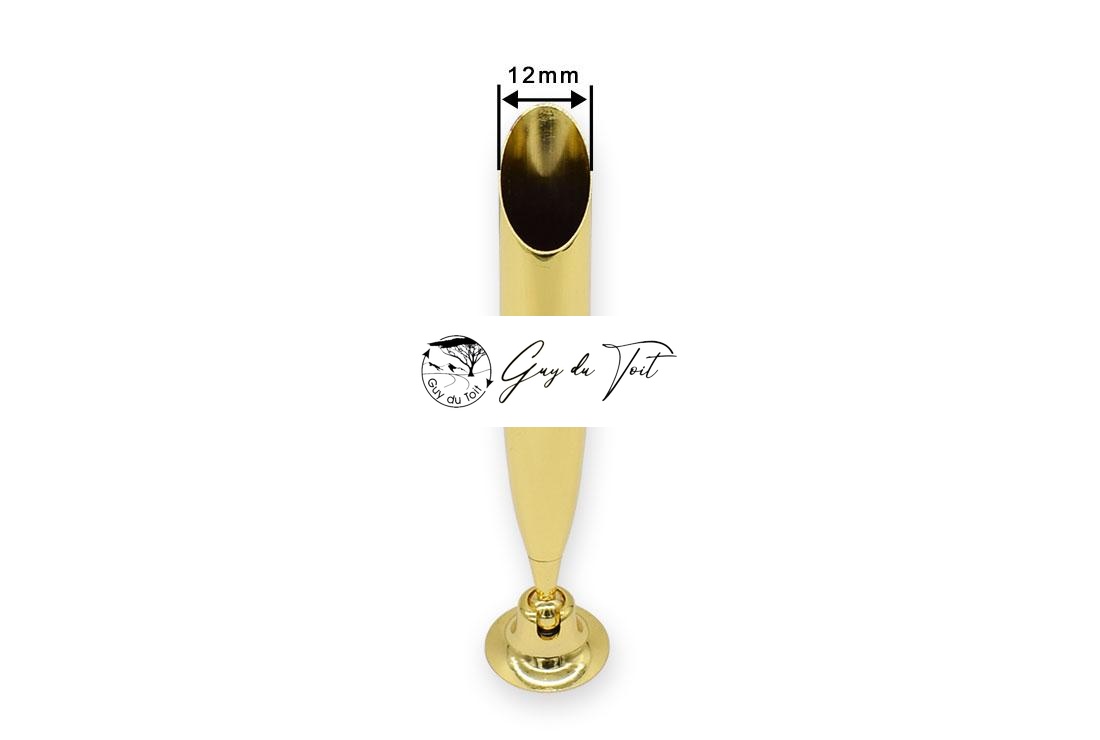 Gold plating. The hole diameter is 12mm. It suitable for the larger pen, such as sierra, lancer pen etc.