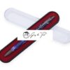 Coffee colour. It is made of the first layer of high-quality leather. Its surface is with beautiful flower pattern which can hold one pen or two slender pens. Length:183mm, Width:35mm.